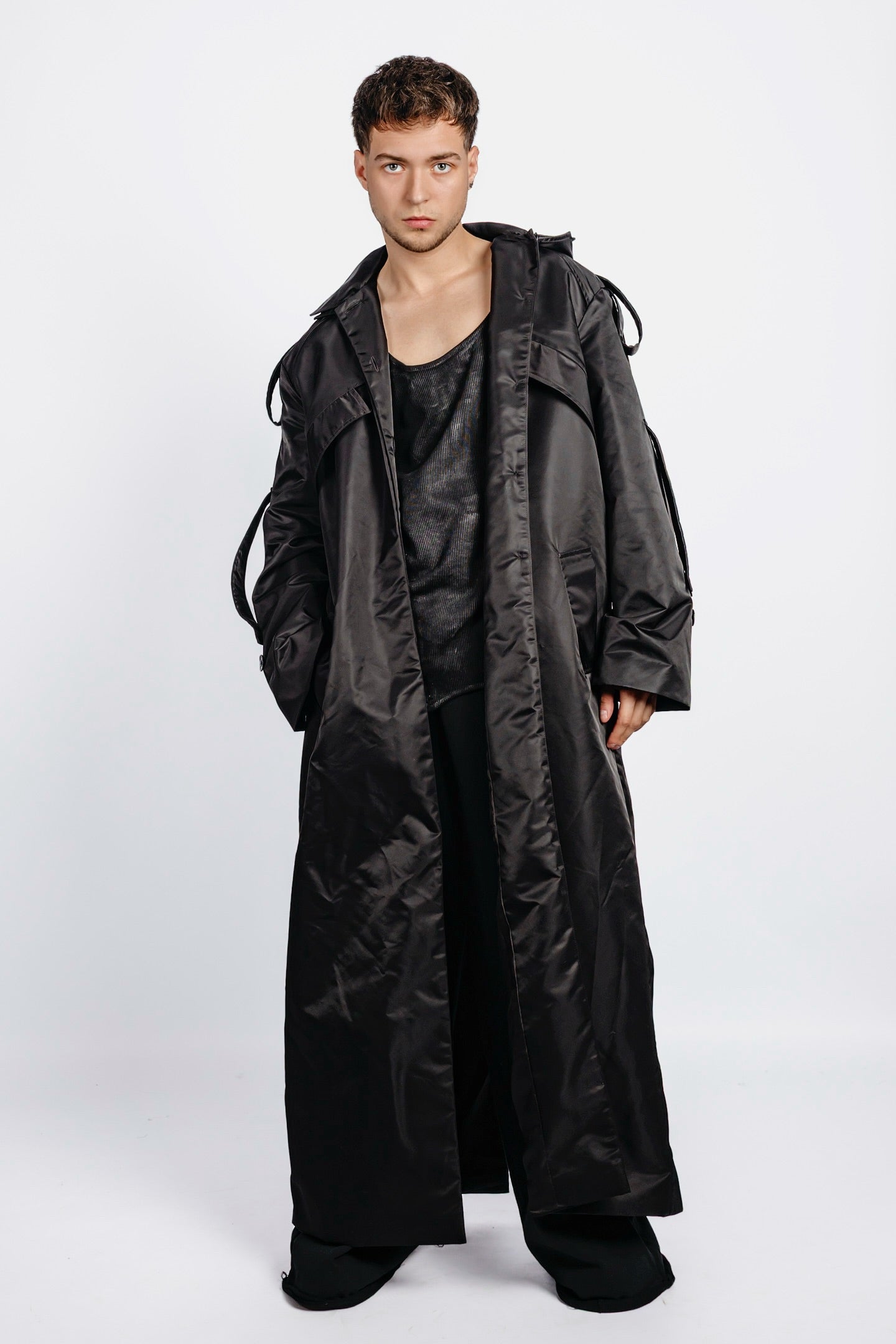 MODULAR LONG TRENCH WITH DETACHABLE HOOD IN NYLON